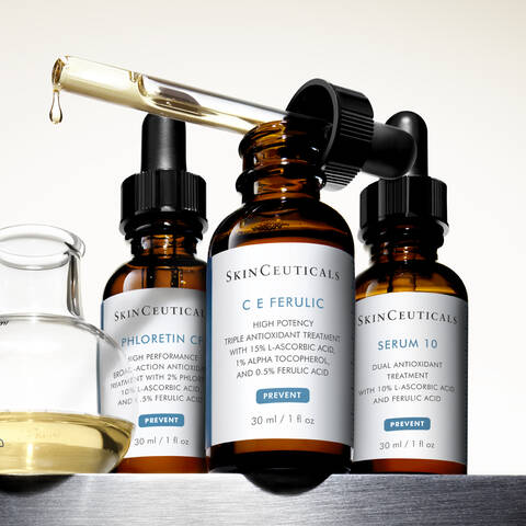 Your skincare routine should respond to your skin type’s unique needs. Common ingredients combined in vitamin C serums include vitamin E, vitamin A, retinol and ferulic acid, which work together to enhance antioxidant benefits. Retinol and vitamin C can work together in harmony to prevent premature skin ageing and promote a brightened complexion, SkinCeuticals have developed a range of vitamin C serums for all skin types with different concentrations for sensitive skin. Find your corresponding formula below.
